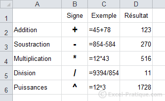Les formules commencent toujours par '=', suivi des des valeurs numériques et des opérateurs.