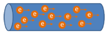 Il y a un courant électrique dans un conducteur, lorsque les électrons circulent tous dans le même sens dans le conducteur en passant, d'atome en atome.